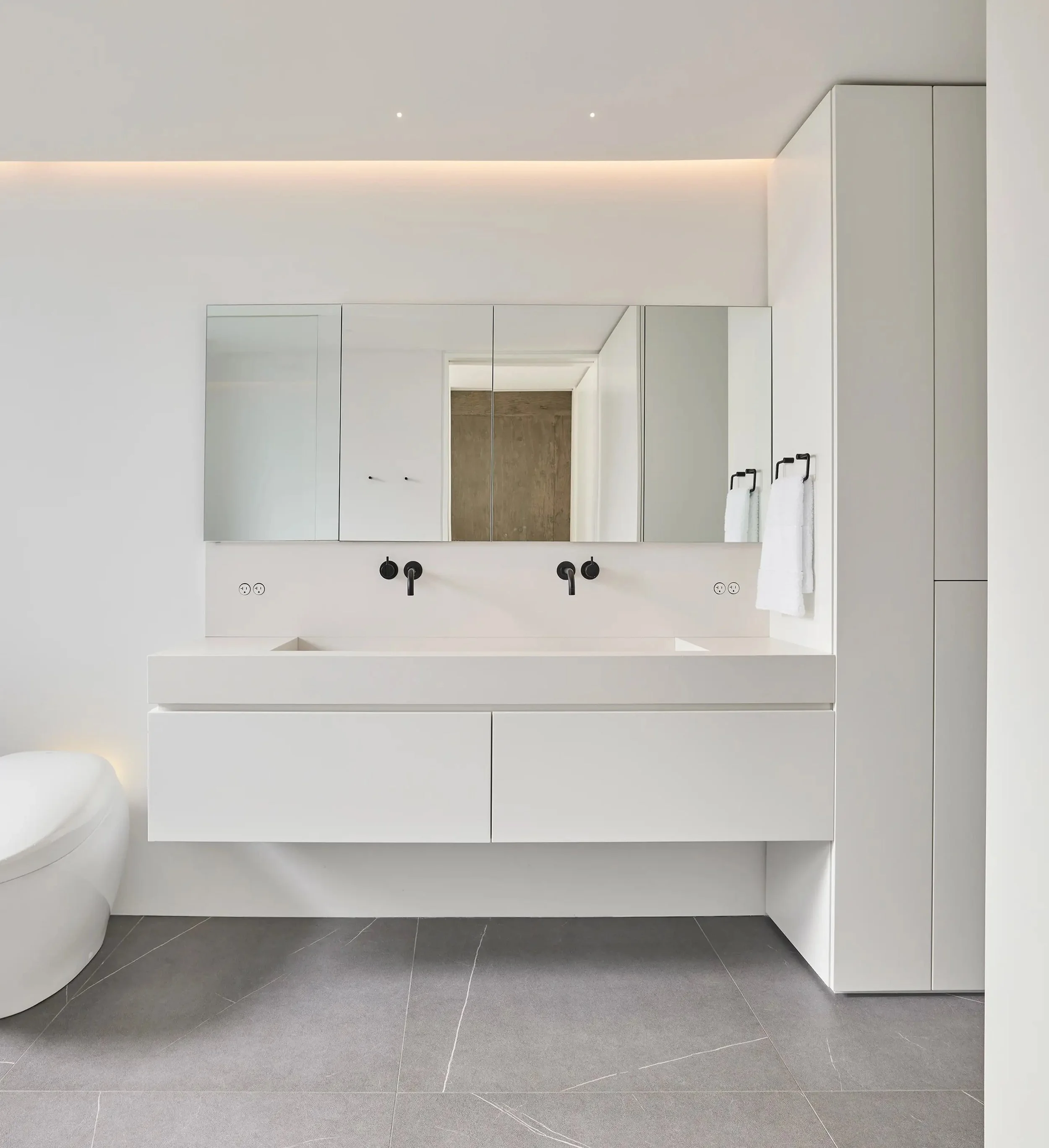 The spatial sequencing as you walk through the project was designed to fit the client’s lifestyle perfectly. The master bedroom, bathroom, and closet approach is fully configured for the morning rituals of the clients. It’s made to limit disruption and add efficiency to each of their schedules. The project ushers the clients through life with purpose. The power of architecture lies in the elements you can't see but will definitely feel.